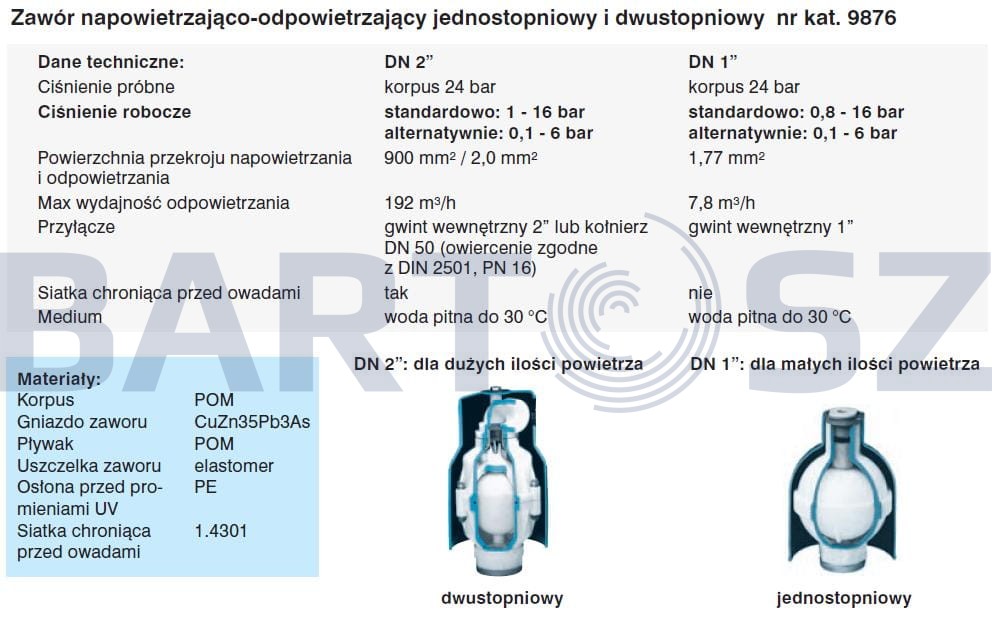 Zawory napowietrzająco - odpowietrzające służą do automatycznego odprowadzania powietrza z instalacji